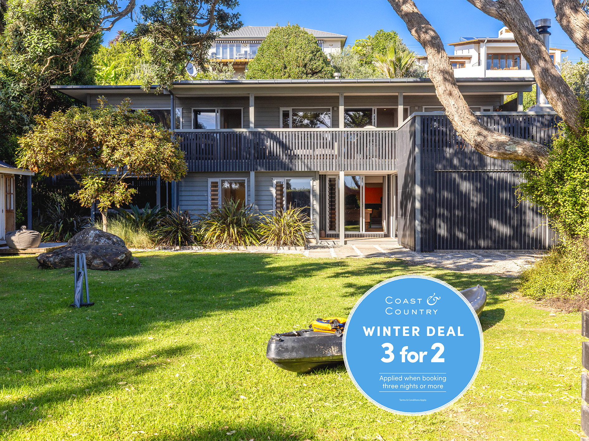 The ultimate property for your family holiday in the most perfect location in Oneroa. Oneroa Beachfront has it all. Leave the car behind - the beach is on your doorstep and the lovely Oneroa village centre is a 2 min walk away.