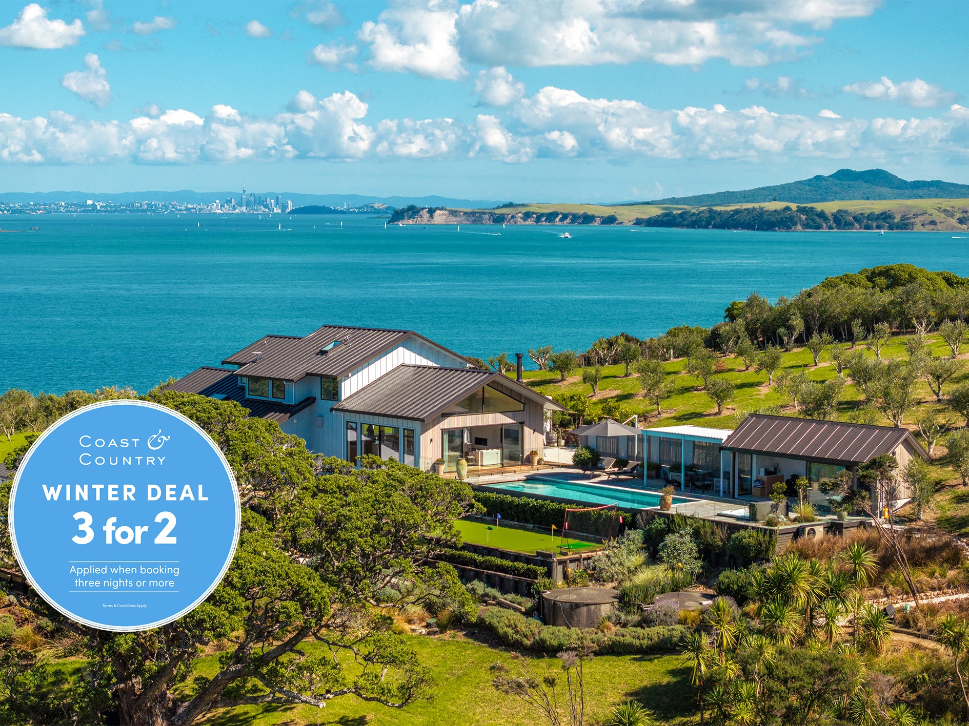 Soak in the hot tub under the stars, improve your game on the putting green or explore nearby vineyards, beaches, and Oneroa’s celebrated cafés — all just minutes away.