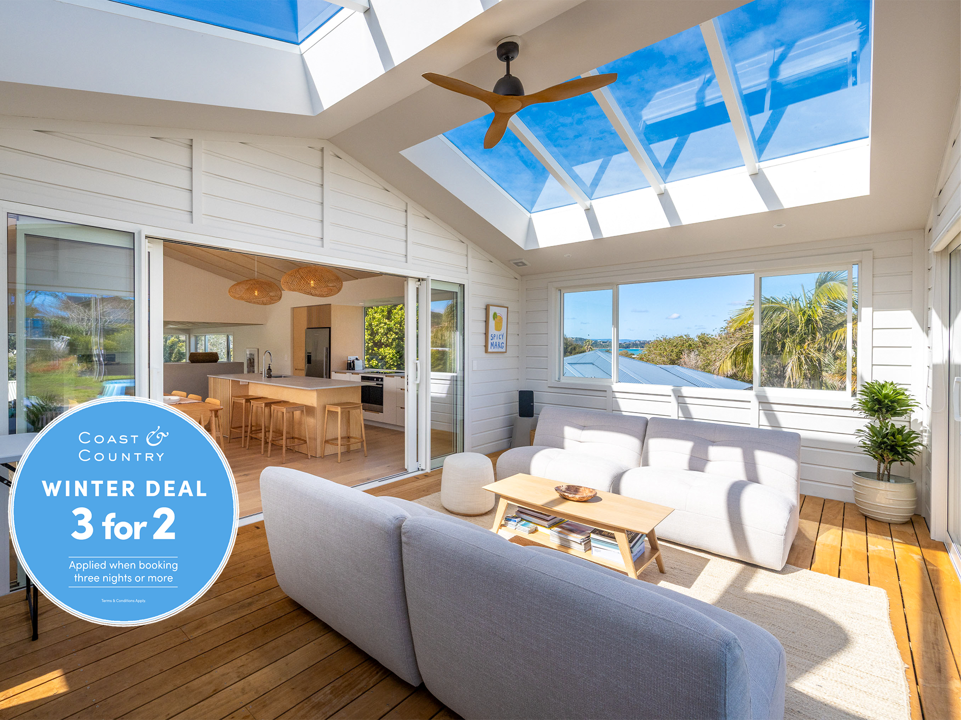 Welcome to The Palms Oneroa, a modern island retreat just moments from the vibrant village of Oneroa — Waiheke Island’s hub of cafés, boutiques, galleries, and golden beaches. This light-filled holiday home blends contemporary design with relaxed island living, making it the perfect base for your Waiheke escape.
