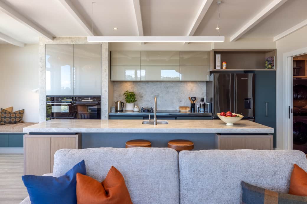 Inside you are met with contemporary elegance—clean lines, refined finishes, and a soothing coastal palette create a sense of calm from the moment you enter. Light-filled living spaces flow effortlessly to sun-soaked outdoor areas, ideal for entertaining or relaxing after a day exploring the island.