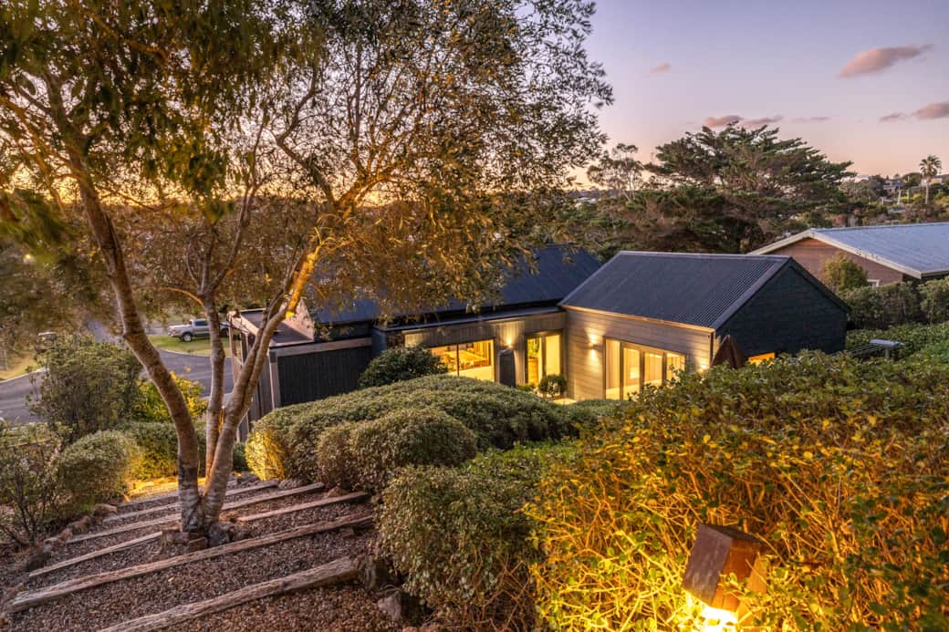 Moa Whare is a warm, inviting home set between Oneroa and Blackpool beaches, designed for easy island living. With generous indoor spaces, peaceful outlooks, and a wide deck that captures rural and sea views it’s a comfortable retreat for up to four guests.